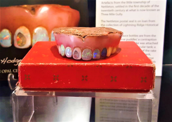 But the legacy of Hodges’ teeth lives on in Lightning Ridge. The Australian Opal Centre has named its popular newsletter “Harold Hodges’ Opal Teeth”. Some members of the Lightning Ridge Historical Society are part of a group called the “Opal Teeth Club”, in which all members have a single, opal tooth in honour of Hodgie. Undoubtedly, the dentures will play a huge role in the branding of the new opal centre, which is currently under construction in The Ridge. Until then, the false teeth will remain on display at the old location, where they can be visited year round. Stop by and share a smile with Hodgie… and maybe a pint or two in his honour while you’re at it.